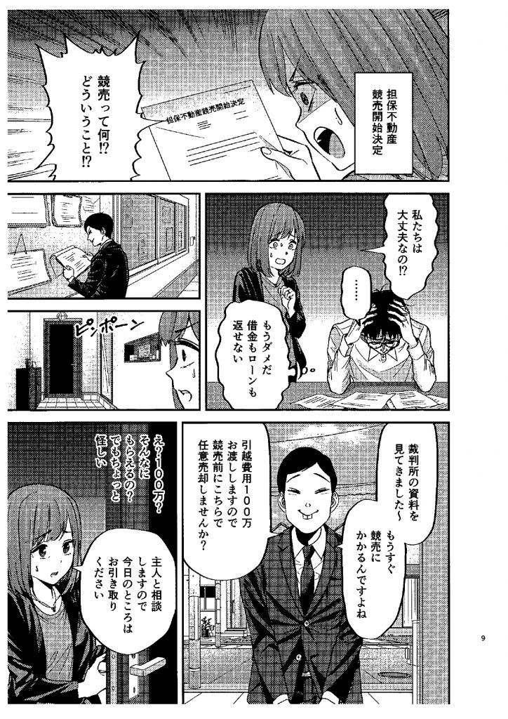 2020/06/13 NEWS マンガでわかる任意売却をご覧ください!【モノクロ版】 一般社団法人近畿任意売却支援協会の佐野です。 相談に来られる方々から任意売却の仕組みがわからないとのお話を頂きます。 当協会では任意売却がどのような仕組みなのかを知って頂くために、 ジャンプやマガジンにも掲載実績のあるプロの漫画家さんにお願いをして、困っている方たちの為にマンガを描いていただきました。 当協会の佐野も登場し、任意売却の流れがわかるマンガとなっておりますので、 ぜひご覧ください。 近畿任意売却支援協会へのご相談はこちら