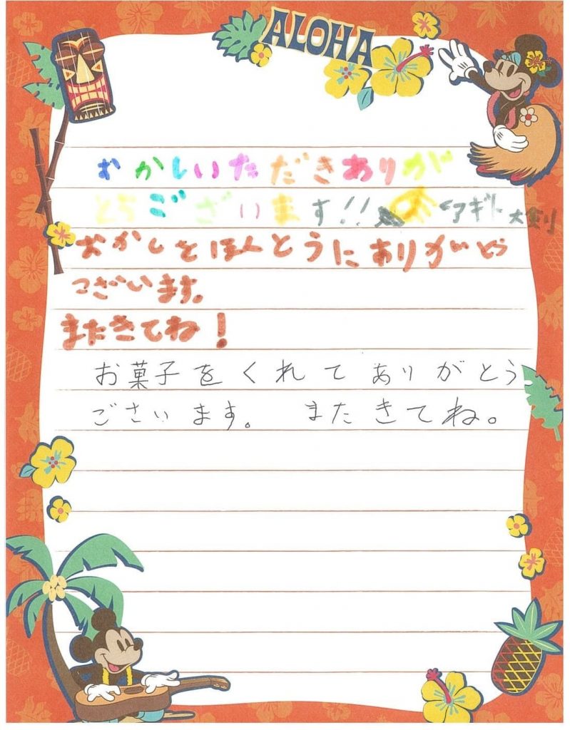 イベントのお礼として子どもたちから、お手紙をいただいたので数枚ピックアップしご紹介いたします。